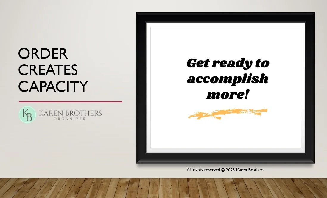 How can you embrace all life offers without getting overwhelmed? By getting organized. Small changes can have a big impact. Learn how to bring order to your life and create increased capacity for the things you love.
